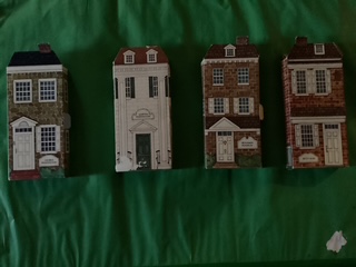 The first dolls are from the Hallmark Company and were introduced to celebrate the Bicentennial in 1976. Hallmark is a private company still owned by the family with its headquarters in Kansas City Missouri (also home to UFDC) founded in 1910 by Joyce Hall and it is the oldest and largest greeting card business in the US. Just an aside some members of the club will remember my DCGB tour of Kansas City (too detailed to relate here) when we visited their doll and toy museum and the visitor center where we could design our own greeting card. Hallmark started introducing collectibles and ornaments in the mid 20th century and for the Bicentennial designed a charming set of 6 1/2inch or 16cm cloth portrait dolls in boxes in the shape of their homes or surroundings where they worked.